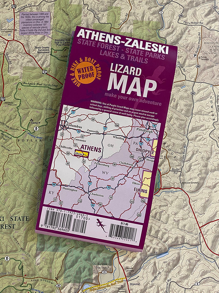 Map of Athens Ohio and Zaleski Strouds Run and Lake Hope State